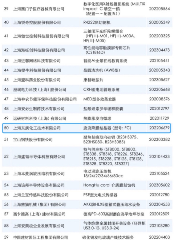 2024 Shanghai Top 100 High-Tech Achievement Transformation Projects List